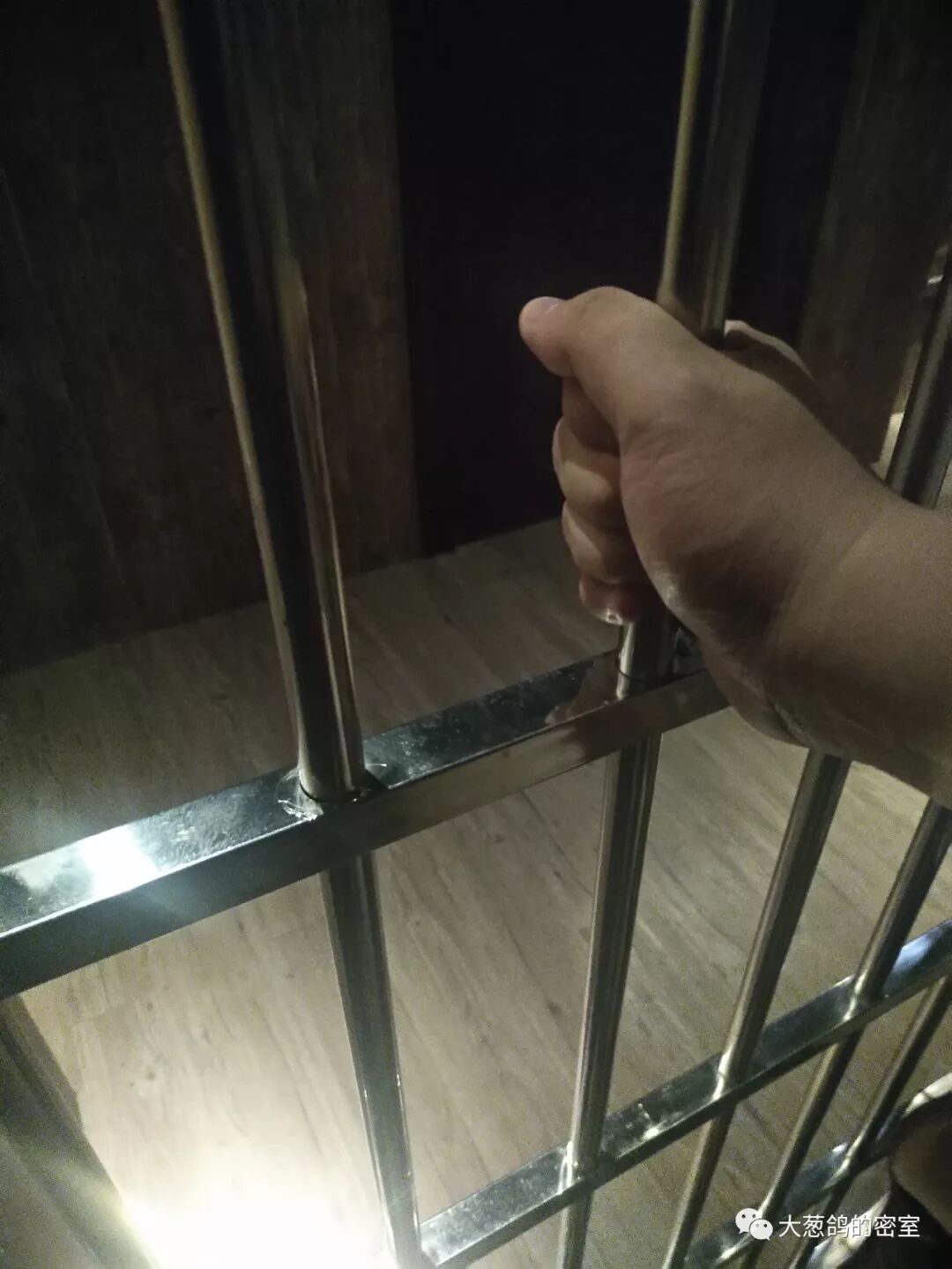 收藏室里的谜题和之前的就不是同一个级别的了,有两个题目有《逆袭》的影子,但是难度起码翻了一翻,其中还有一道操作题,我们在收藏室里折腾了30分钟的样子,才打开了那个小牢房——我们必须要关一个人进去,才能看到里面的信息。这时辉爸爸自告奋勇箭步进入,我们关上牢房门触发了里面的机关,这时那个操作题还没有解开来~我们正在专心操作的时候,牢房中传来了非人类的叫声,辉爸爸竟然变成了灵长类动物我去!!原来那个神秘的牢房,能使人类的基因退化,还好关在里面的不是老夫。经过了各种安抚和投喂之后,辉爸爸总算冷静下来,能稍微正常地告诉我们牢房里的线索,配合整个剧情,解开最后一关,拿到红宝石项链,离开海盗船,成功“逆袭”!!
